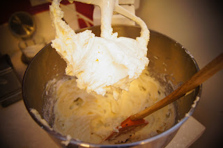 You can’t really see them in the picture, but the little vanilla bean seeds sure make it pretty! I asked the Hubby to “test” the buttercream… ย ๐ Husband approved (and he is REAL particular about icing!). I ended up making six batches of the stuff throughout the process.