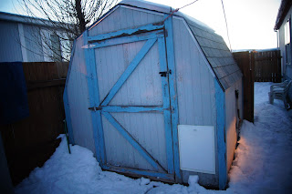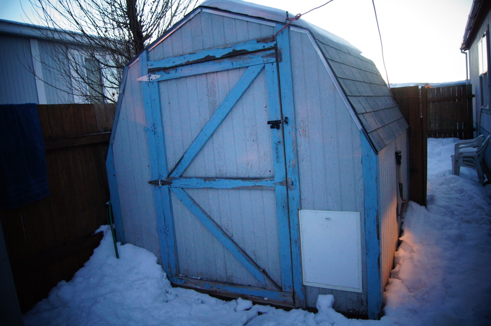 This is what the inside looked like, except it had even been cleaned out a bit here. His “work shop” was on the left and the dog area was on the right. The summer before he had built himself a nice little work space with all of his tools neatly displayed on the wall and little nails and screws in baby food jars, but that all had to come down.