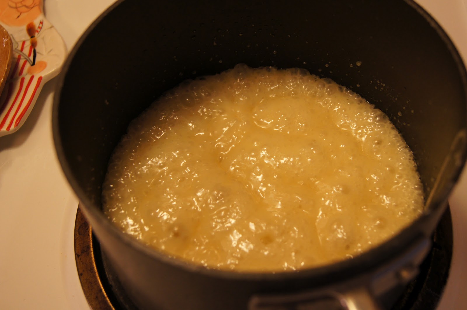 Melt butter in a saucepan over medium heat. Add in sugar and evaporated milk, stirring until dissolved. Bring to a boil and let cook for 5 minutes, stirring occasionally.