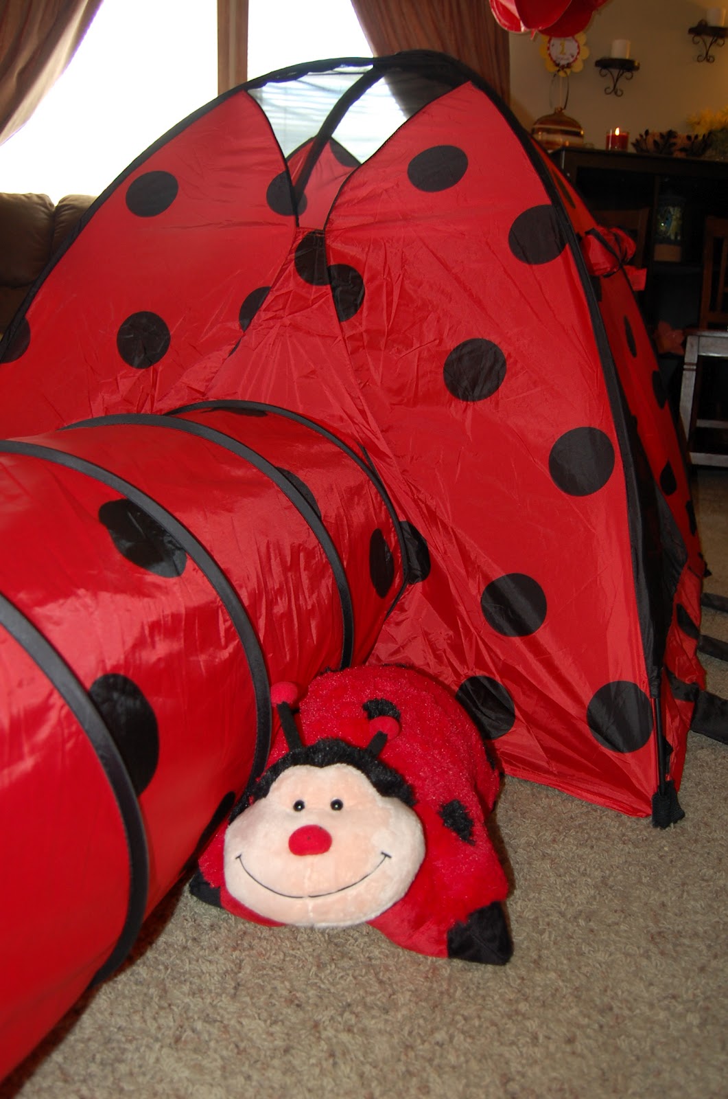 Catching Ladybugs! Homemade ladybug house made by the Hubby.