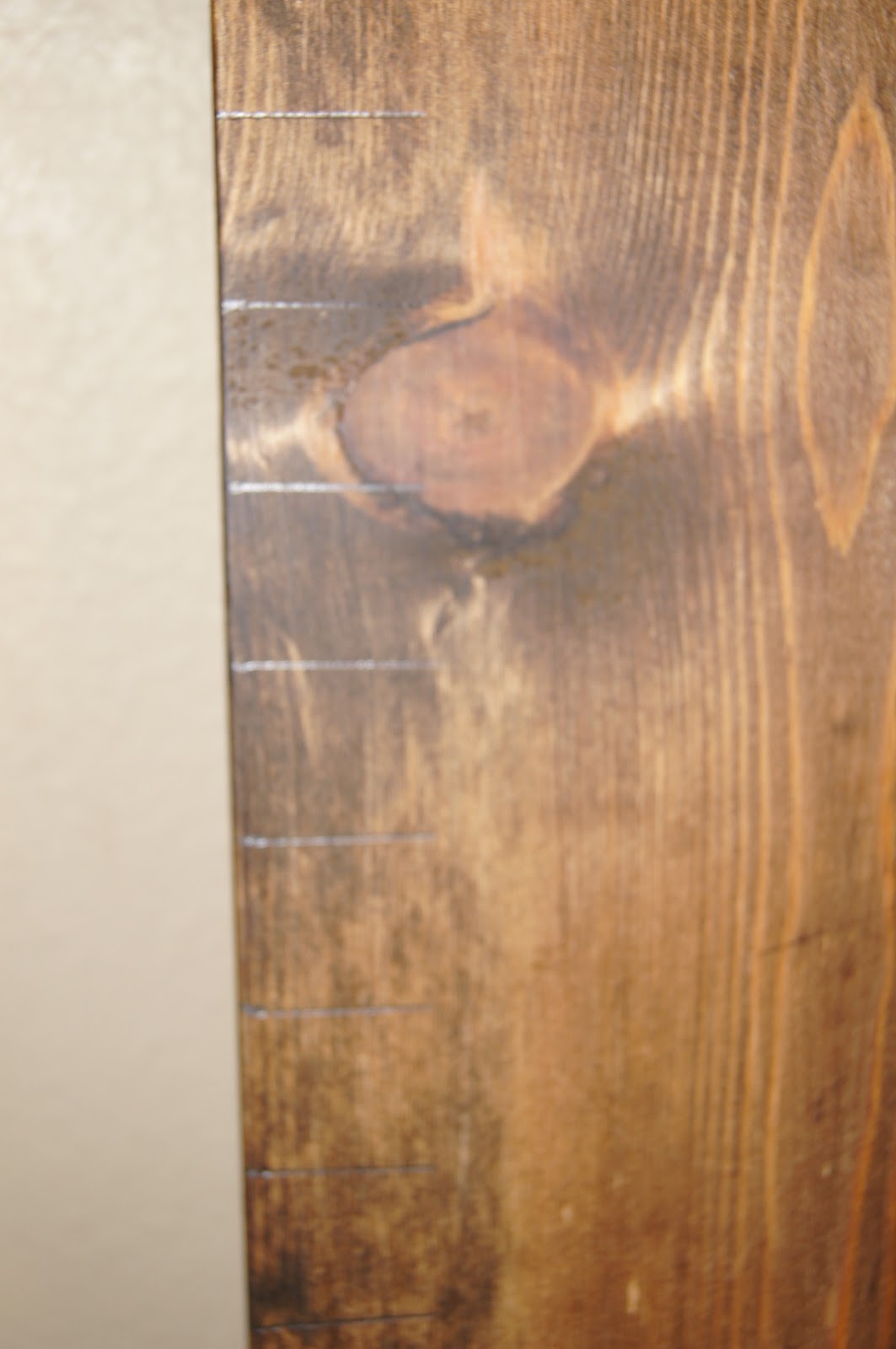 I then used a tape measure and marked every inch up the left side of the board using a pencil. I made the lines 1″ long. (Make sure your measuring device is accurate! I was initially using a ruler that wasn’t completely accurate and it resulted in a lot of erasing!)
