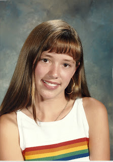 Eight grade was the introduction of the eye liner. And something my parents liked to call “The Unit.” I was so obsessive about my bangs… each piece perfectly curled and doused with about a can of hairspray each time, that when the wind would blow, the whole “unit” would blow back up against my head.