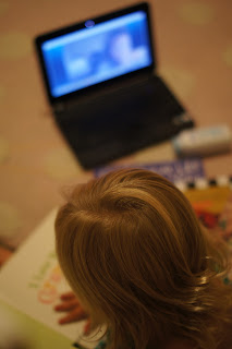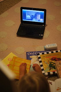 Gwyn was Skypeing with her Grandma the other day, and before I knew it the computer was missing and I hear chatter coming from Gwyn’s room. I peek in and see this.