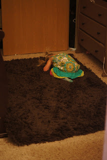 4:15- Gwyn has a diarrhea doo doo that gets on her clothing as I change her. Awesome. Once everything is cleaned, she bolts.