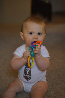 Yesterday Baby Cal turned 7 months. And I’ve got to admit, he keeps getting better and better. Not that he wasn’t great before… well, there were definite moments of not-so-greatness, but he is just really becoming  a little dude. A sweet, independent, inquisitive little dude.