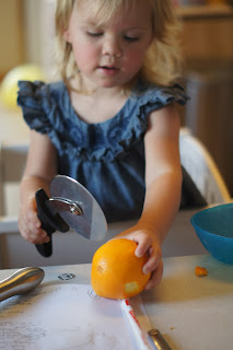 Gwyn then takes out various utensils from the utensil drawer and plays with those while I work.