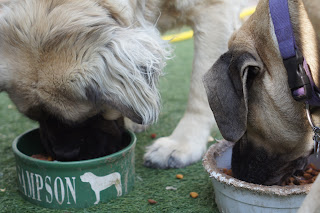 3:50-Gwyn approves of cream while I decorate pie.
