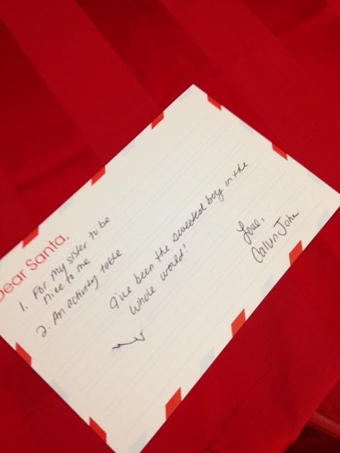 At the mall there is a pretty cute little letter writing station where kids can write a letter to Santa on special paper and drop it in a fancy mailbox in order to make it to the North Pole.