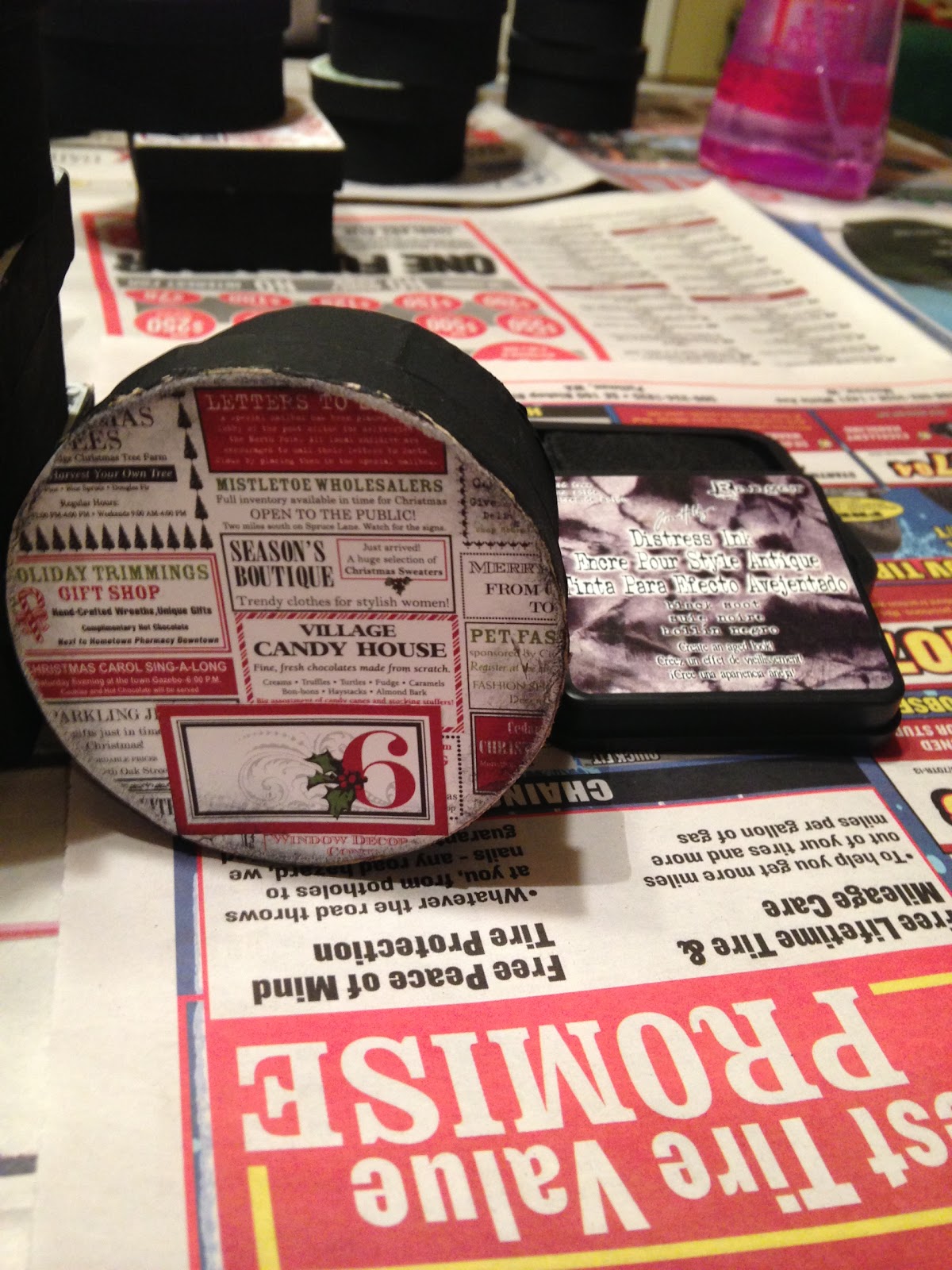 Then, we rubbed Distress Ink around the edges of the boxes with a paper towel to give them a vintage feel.