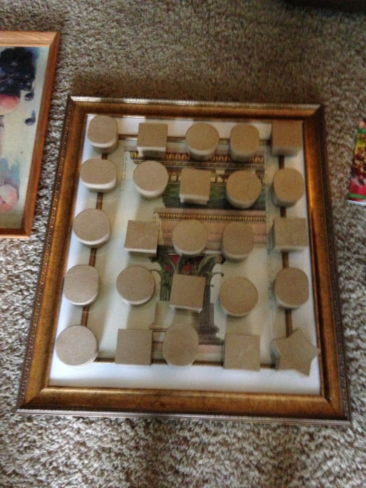 Here is my thrift store frame with the boxes placed on top to ensure that they would fit.