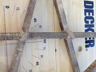 My husband cut the two pieces of wood into thirds so that I had my five equal pieces, with one leftover.