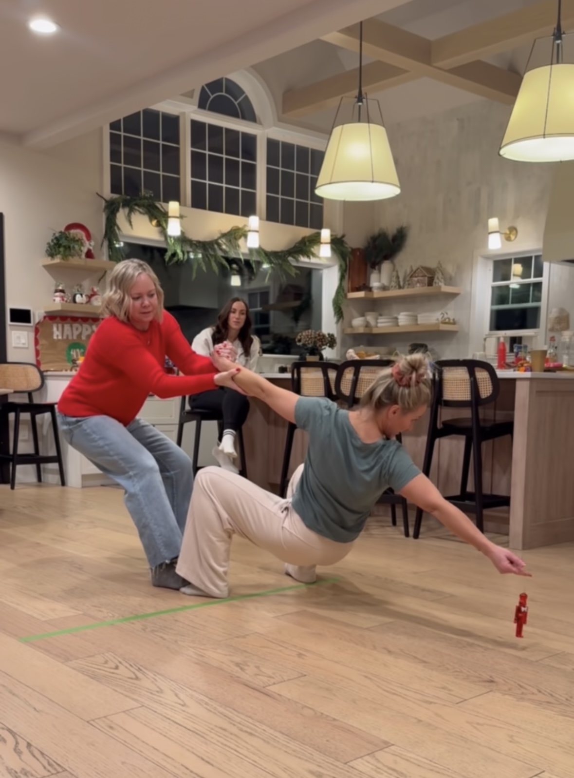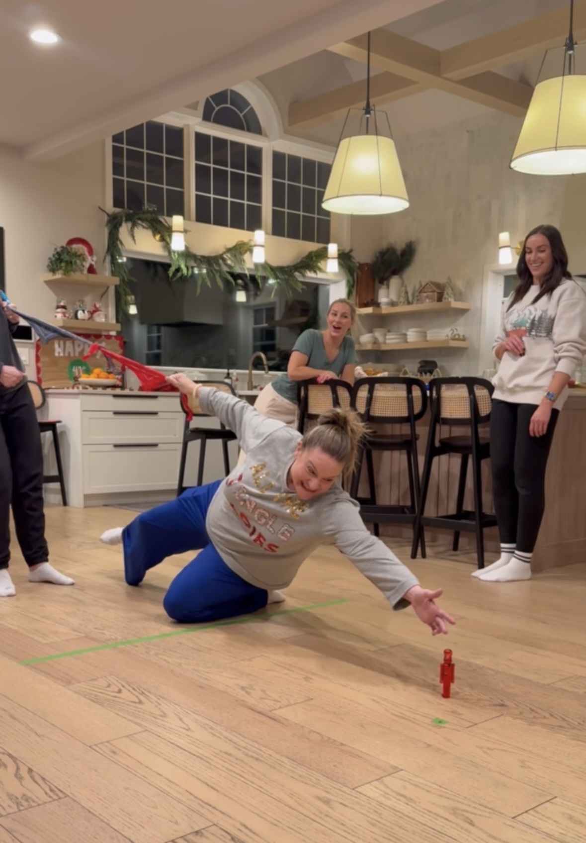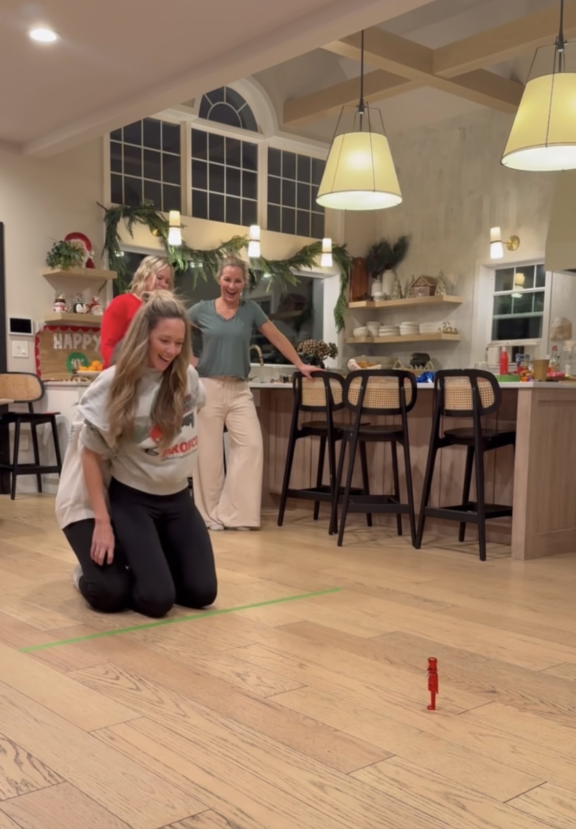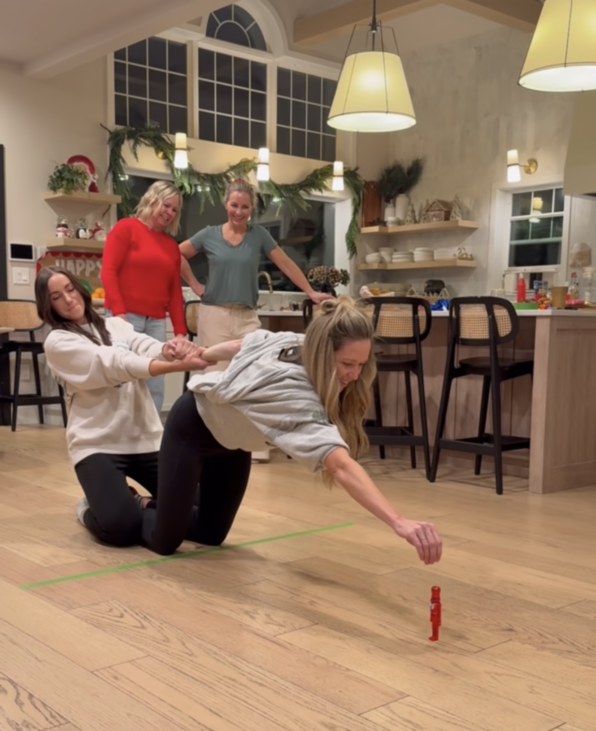 Items that work well for placing, small nutcracker ornament, small bottle brush tree, really anything that takes a moment to stand. *We initially did not clarify if objects could be used to help get across the line-I would suggest agreeing on this early on.