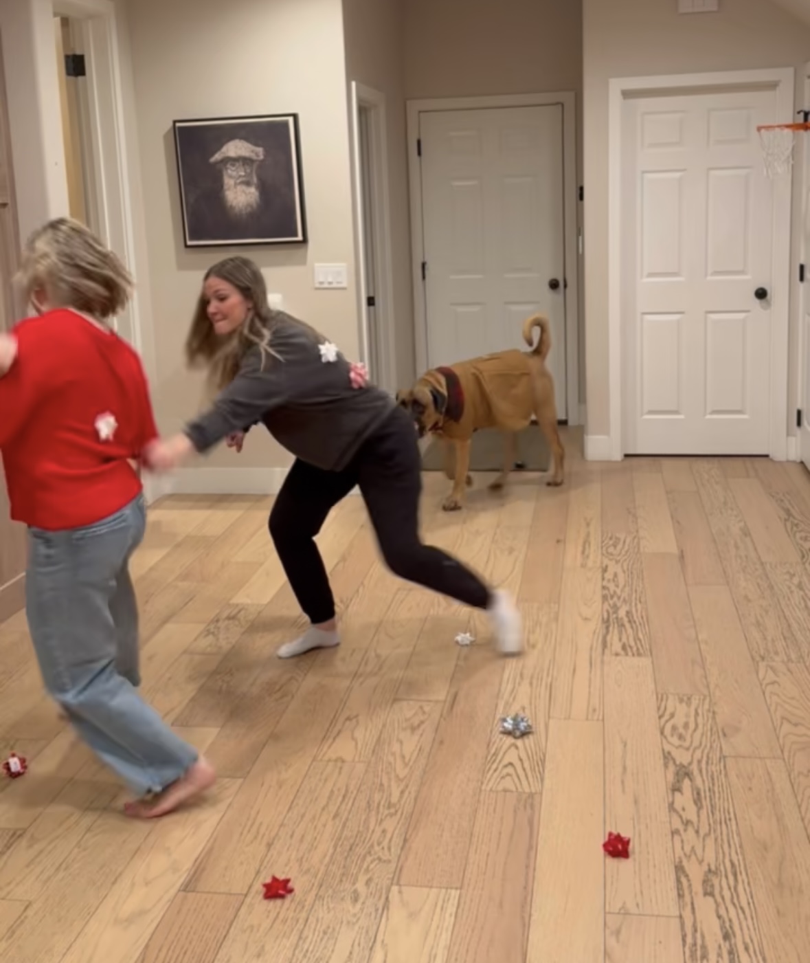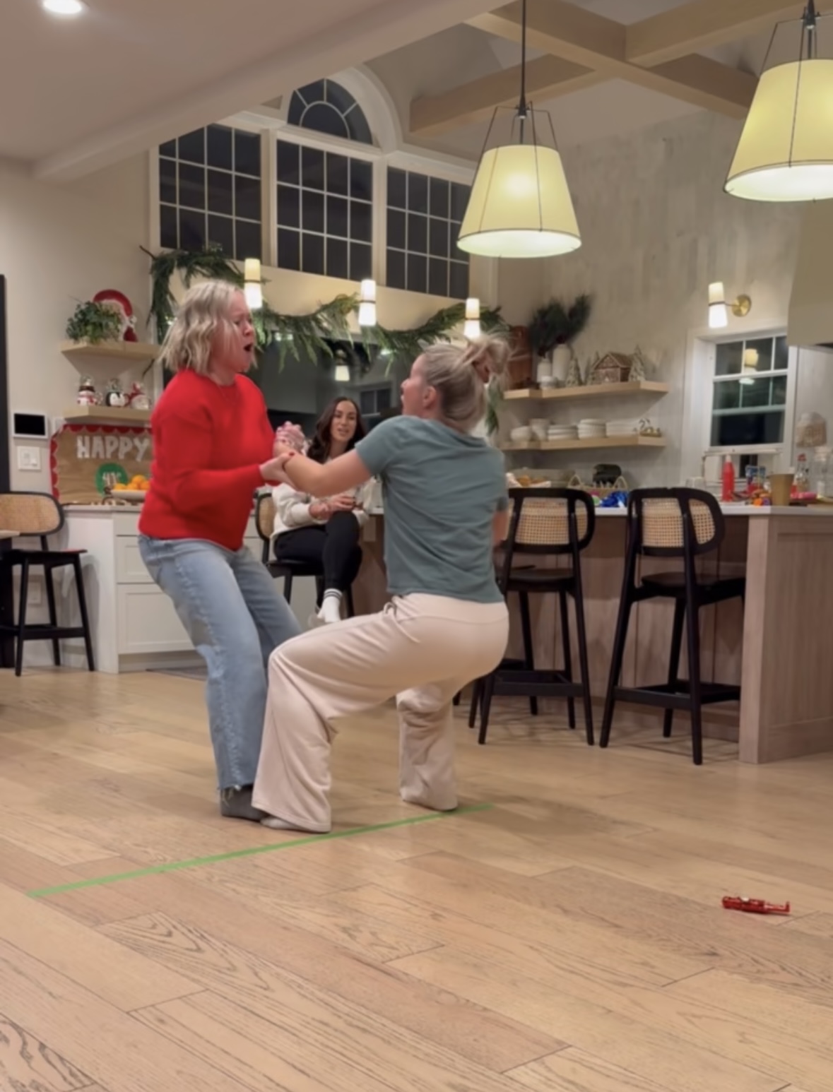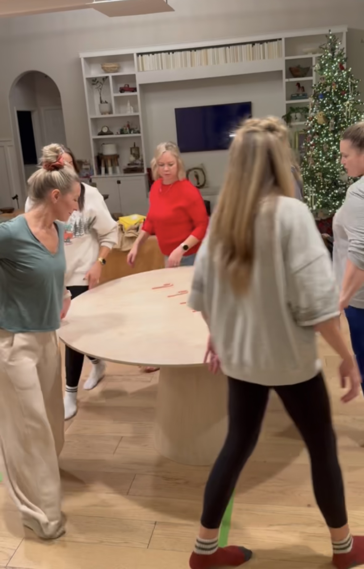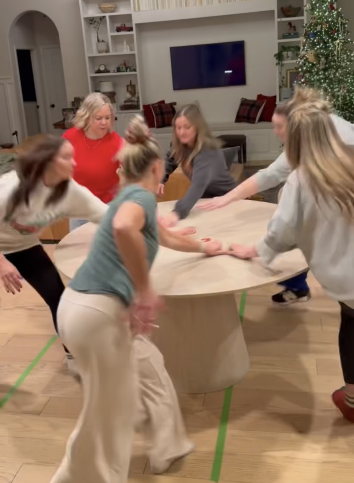 Items that work well for placing, small nutcracker ornament, small bottle brush tree, really anything that takes a moment to stand. *We initially did not clarify if objects could be used to help get across the line-I would suggest agreeing on this early on.