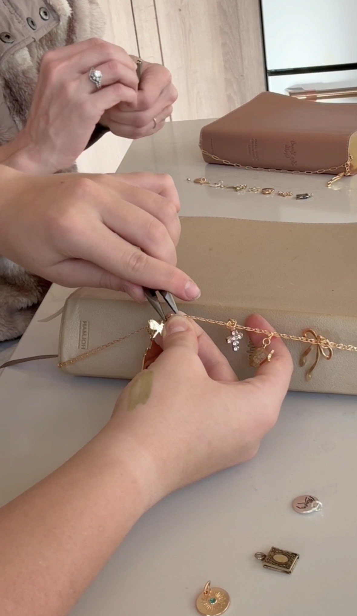 Such an easy way to add a little personality and meaning to something you use every day. Whether you keep it simple or load it up with charms, it’s a fun project to make your Bible feel even more special. If you try it, I’d love to hear how yours turns out!