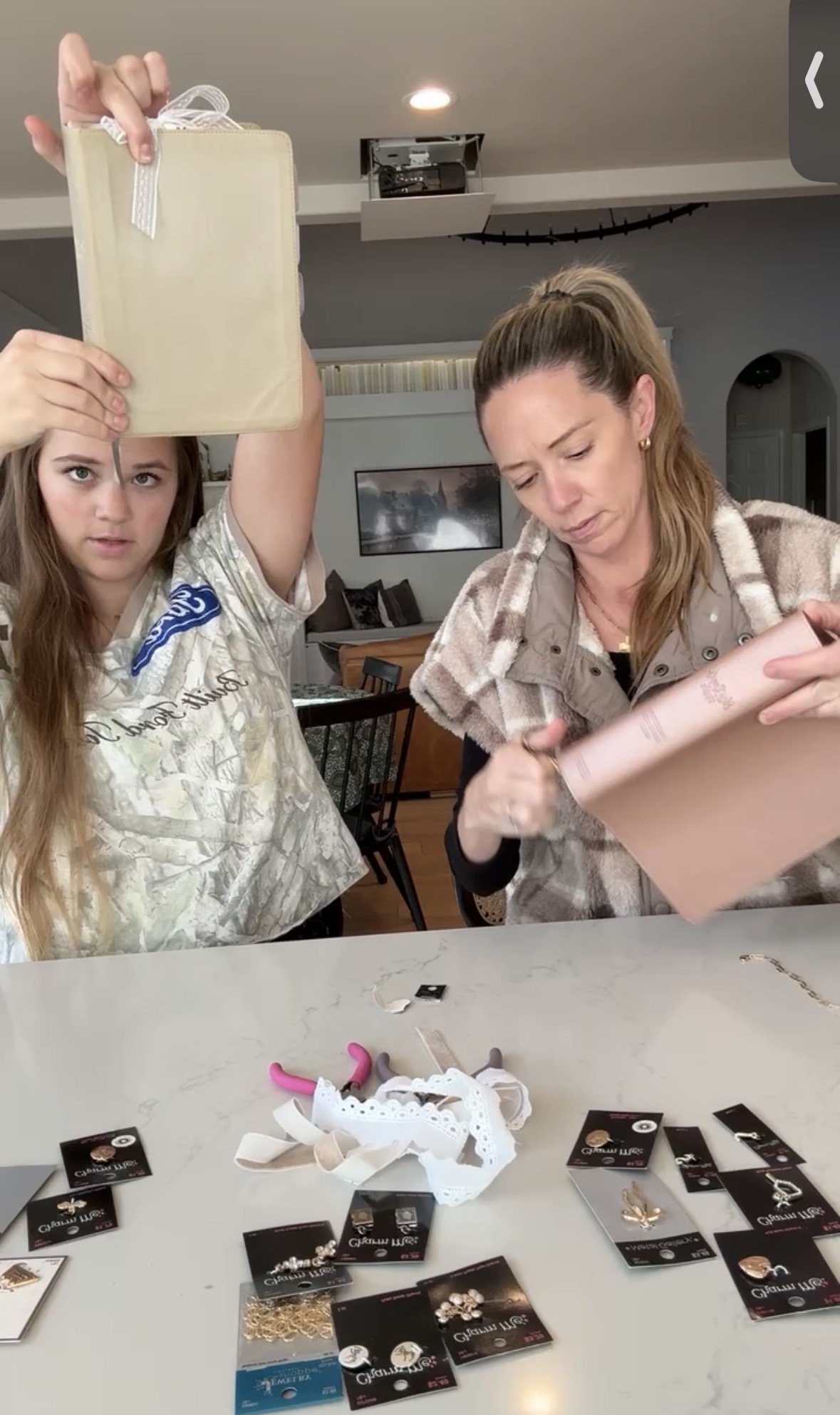 I first laid my charms out next to the chain to see where I wanted them to go, but Gwyn just went for it and was halfway done by the time I started. To add charms, open a jump ring, slide it through the charm, hook it onto the chain, and pinch it closed. Repeat this step for as many charms as you’d like!