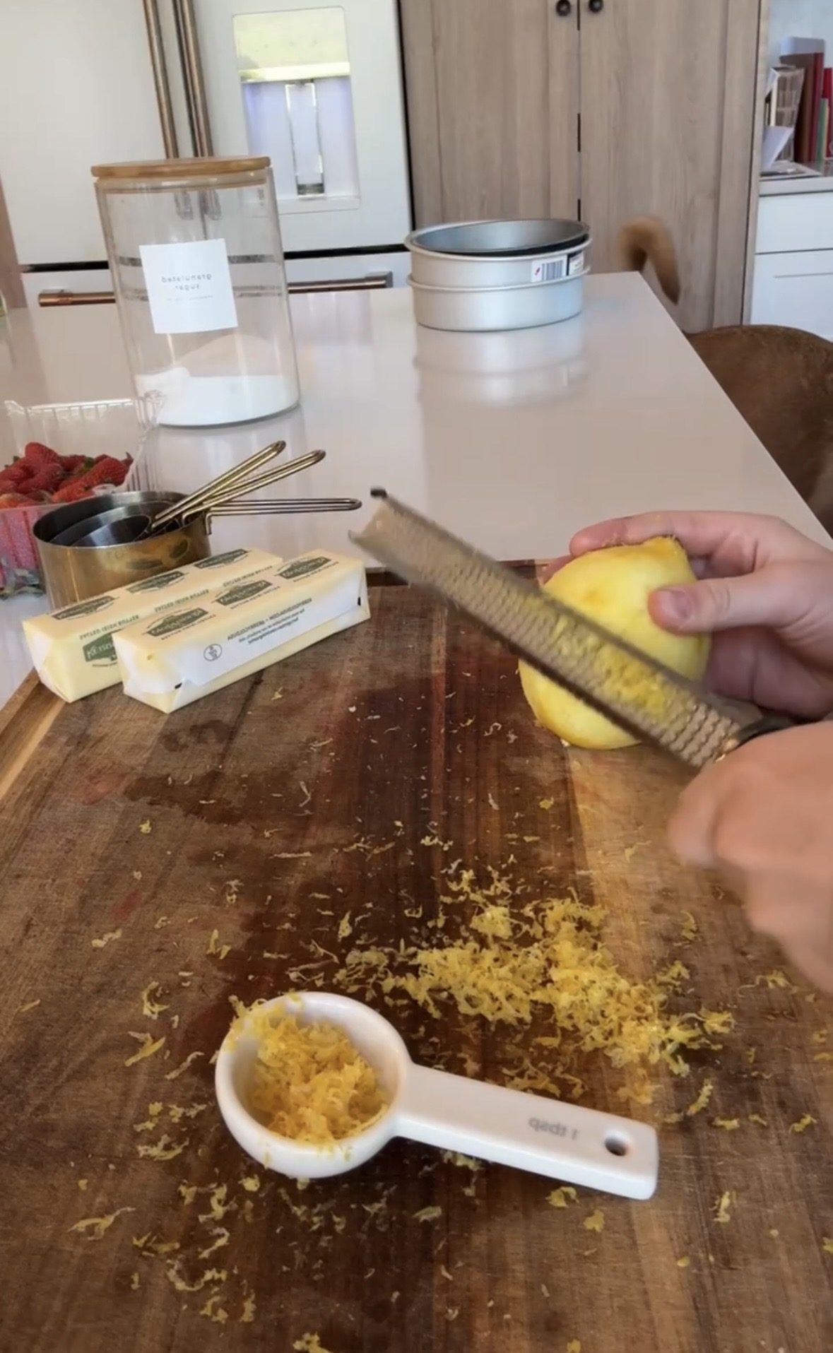 On a whim, I decided I’d like to bake a cake for Easter. I wanted something with fresh flavors, something that gave a wow-factor, and something that matched my tablescape, and the recipe I found did all of those things. I only tweaked a couple of things, and I made those notes below. It also made it extra special in that Gwyn and Frankie jumped in to help, and the end result was just perfect. The recipe comes from Preppy Kitchen, and you can find the original recipe HERE.  The main change we made was  that we felt the frosting was sweet enough and used 7 cups of powdered sugar in the frosting instead of 8, and we had a decent amount leftover. I will share some other little tips along the way below as well.